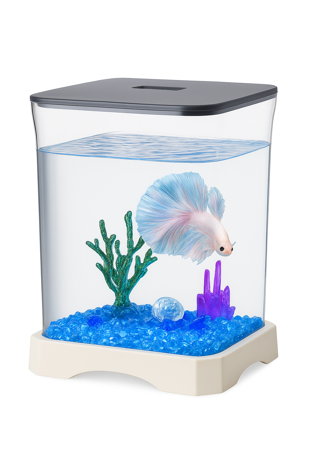 Minimalista, moderno e surpreendentemente resistente. Este mini aquário em acrílico premium é a escolha de quem valoriza design limpo sem abrir mão da durabilidade.