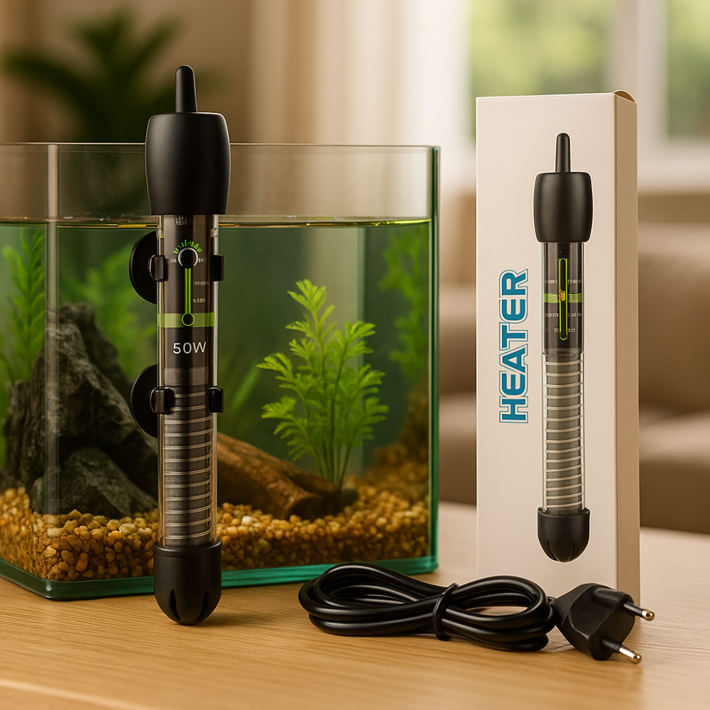 Ajuste a temperatura desejada uma vez e deixe o termostato fazer o resto — ele liga e desliga automaticamente, economizando energia e protegendo seus peixes. Resistente, discreto e à prova d'água, funciona submerso sem interferir na estética do aquário.