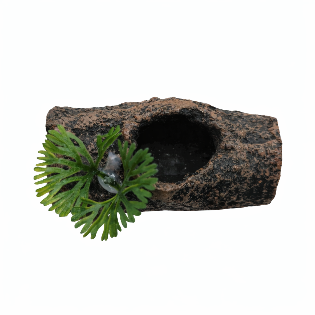 O Enfeite Tronco Toca com Planta é ideal para criar um ambiente mais realista, confortável e funcional para peixes pequenos e cascudos.